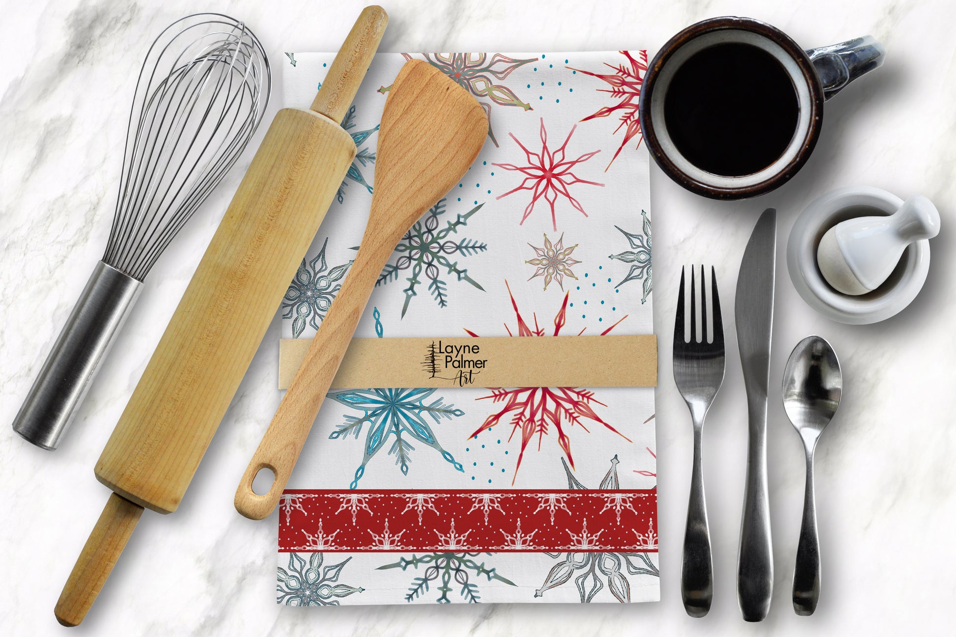 Elevate your kitchen with a beautifully designed tea towel from our 2025 collection. Meticulously crafted from 100% flour sac cotton, its generous 50cm x 70cm size, combined with impeccable stitching and superior absorbency, ensures lasting durability and refined functionality. Featuring exclusive original art by Layne Palmer, this washable towel blends practical elegance with artistic excellence.