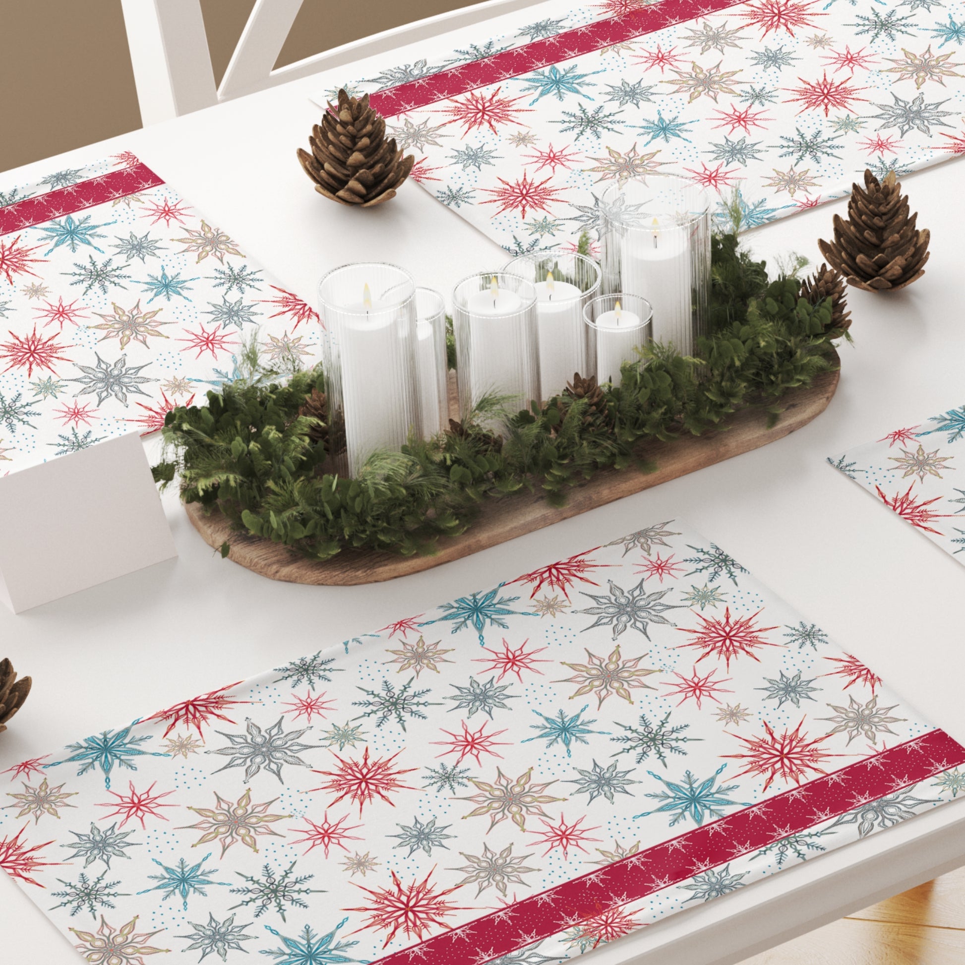 Add a touch of festive charm to your holiday table with the Rainbow Frost Placemats. This set of four is made from a comfortable and durable cotton-linen-poly blend, perfect for everyday use during the season, featuring original watercolour art in a limited series.